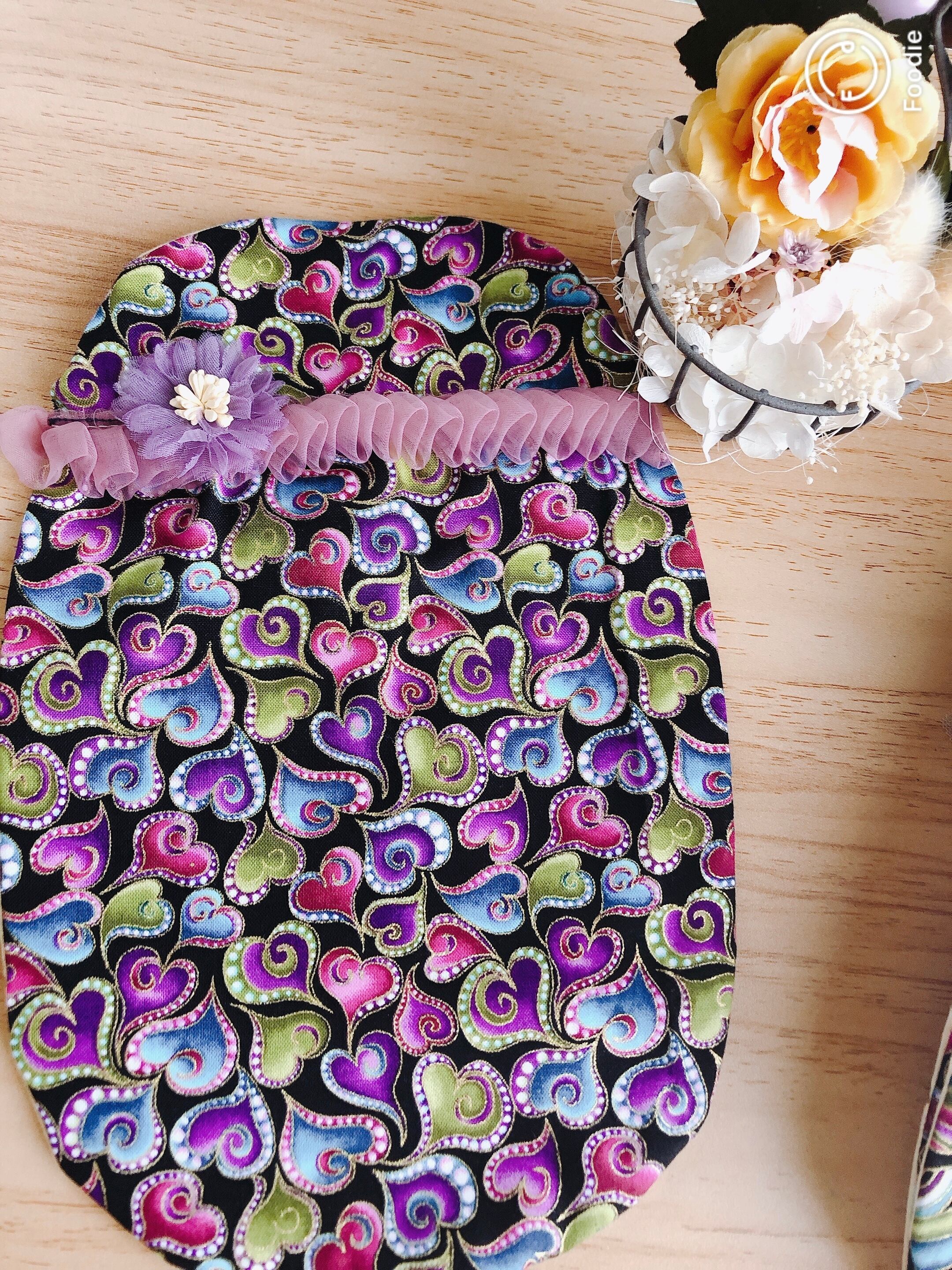 ストマーカバー、ハート柄のフリフリレースの花付き