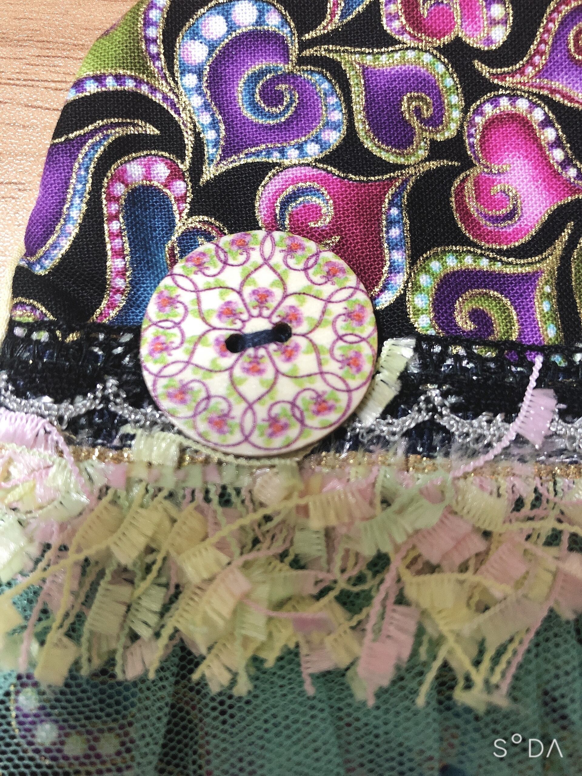 ストマーカバー、ハートメタリックフリフリレースオシャレボタン付き